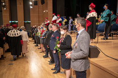 Ważną częścią uroczystości było ślubowanie przedstawicieli studentów pierwszego roku, które poprowadziła prorektor ds. kształcenia dr hab. Iwona Włoch, prof. PRz, oraz przedstawicieli doktorantów Szkoły Doktorskiej Nauk Inżynieryjno-Technicznych PRz, które poprowadził prorektor ds. rozwoju i współpracy z otoczeniem prof. dr hab. inż. Jarosław Sęp. JM Rektor dokonał pasowania studentów i doktorantów.