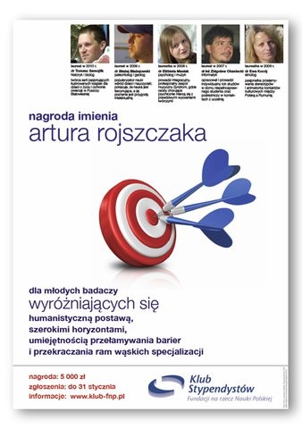 Klub Stypendystów Fundacji na rzecz Nauki Polskiej po raz czternasty ogłasza konkurs o nagrodę im. Artura Rojszczaka, tragicznie zmarłego filozofa, jednego z założycieli klubu. Nagroda to 5000 zł netto, jest przyznawana corocznie młodym doktorom (do 5 lat po otrzymaniu doktoratu), którzy poza wybitnymi osiągnięciami naukowymi wyróżniają się humanistyczną postawą i umiejętnością przekraczania ram wąskich specjalizacji naukowych.